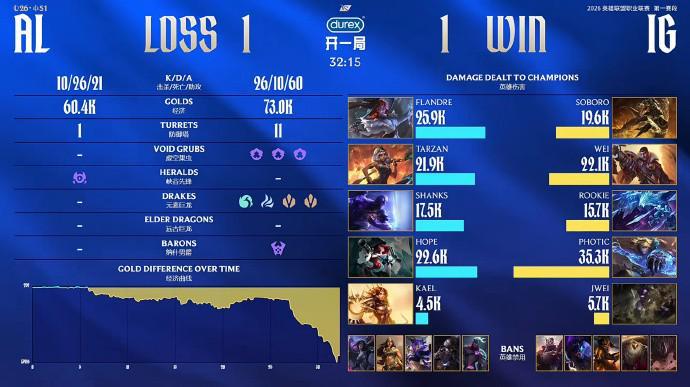 北京时间1月27日,LPL第一赛段,iG对阵AL。最终AL 2-1战胜iG,暂时登顶积分榜。